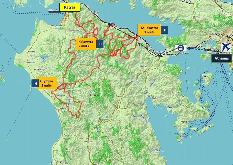 Beautiful loops of tracks and landscapes between sea and mountains in the northwest of the Peloponnese.